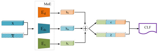 To simultaneously learn the MoE modules , , and the projection network P, the loss function for this discrimination task is calculated as the sum of instance-level SupCon loss within a batch of samples I.