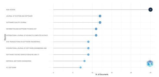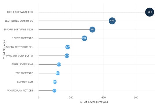 The bibliometric analysis’s findings show that a small group of authors are responsible for the most famous works. Since the majority of papers are open access, contributions are quickly shared with the public and as the topic advances, a large number of writers emerge. It’s also important to notice that the topic is becoming more and more cited (with 626 citations for the most cited paper), which shows how important it is right now. China, India, and the USA take the top three spots for scientific output in this field. These results are not surprising given that these nations lead Nation Rank’s rankings for worldwide scientific productivity in all categories []. The results show that even the most productive researchers use a variety of approaches and expertise, demonstrating the interdisciplinarity of the study. In order to effectively transfer knowledge to all players, journals must be both effective and comprehensive. Our analysis revealed that “The IEEE Transactions on Software Engineering” and “Lecture Notes in Computer Science” were the two sources with the most citations on the subject.