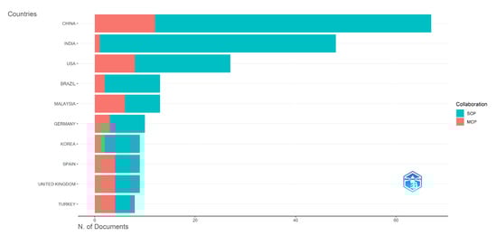 - The Top Developing Nations According to Corresponding Authors: A graph showing the top 10 most relevant countries based on the amount of articles produced, either in single country publication or multiple countries publication;