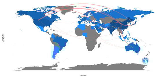 - Jaffe, K.; Ter Horst, E.; Gunn, L.H.; Zambrano, J.D.; Molina, G. A network analysis of research productivity by country, discipline, and wealth. PLoS ONE 2020, 15, e0232458. [Google Scholar] [CrossRef] [PubMed]
