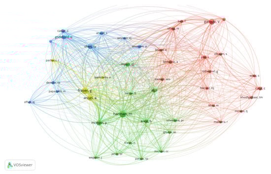 - Thematic Map: A network graph, referred to as a thematic map, is created by the keywords and how they are connected. Each thematic map’s labels are identified using the name of the keyword that appears most frequently in the connected topic [];