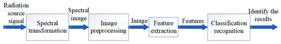 The emitter signal recognition method proposed in this paper first performs spectrum transformation on the emitter signal to obtain the frequency domain image, then selects the improved depth convolution network based on EfficientNetv2 to extract the feature information and finally realizes the image classification according to the extracted features to achieve the purpose of classifying emitter signals. The flow of this method is shown in Figure 1. The main contributions of this paper are summarized as follows:
