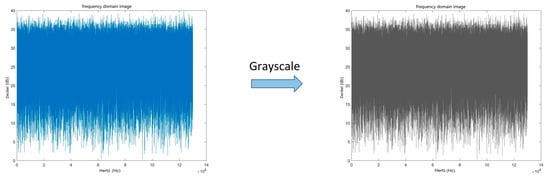 The image processing in deep learning can be regarded as the processing of multidimensional matrix data. In this paper, considering that the training of radar frequency domain image-classification model is not related to the image color degree of training data, the color image with three channels is read as a single channel gray image, as shown in Figure 5. Since the image processing based on deep learning is equivalent to the processing of multidimensional matrix data, the use of one-dimensional convolution is considered to convolute the image in one direction, in which the input dimension in the one-dimensional convolution for the image is the height of the image.