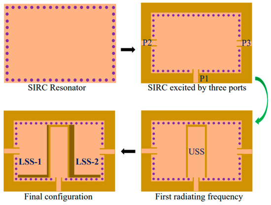 2. Development and Analysis of the Proposed SIRC-Based Self-Triplexing Antenna
