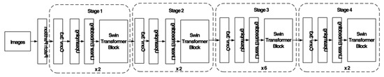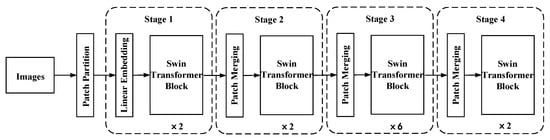 Deep learning networks often encounter challenges during training and application, such as (1) visual models being prone to large-scale instability; (2) high-resolution images or windows being required for many downstream visual tasks; and (3) high graphics processing unit (GPU) memory consumption when dealing with large images and high resolutions. To tackle these issues, Liu et al. proposed the Swin Transformer technology [11], which includes (1) post-normalization technology and scaling cosine attention to enhance the stability of large visual tasks; and (2) a log-spaced continuous location deviation method to enable the model trained on coarse images to be applied to higher-resolution counterparts. The specific structure is depicted in Figure 2. Furthermore, zero redundancy optimizers, activation checkpoints, and sequential self-attention calculations can significantly reduce GPU memory consumption. By training a Swin Transformer model using these methods, it can be applied to large visual tasks, including those involving high-resolution images, while mitigating model instability and GPU memory consumption. The structure of Swin Transformer v2 is shown in Figure 2.