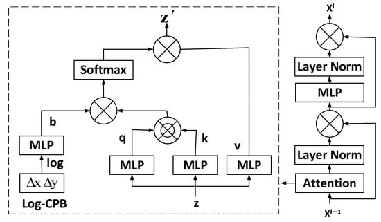 The symbol g in this equation represents a small meta-network consisting of two layers of multi-layer perceptron (MLP) and a ReLU activation function. corresponds to the scaled coordinate of linear space, and the new deviation is learned from the original deviation. If the training is parameterized directly and the pre-trained bias parameters are not used, then the performance of the window may suffer when it is promoted to high resolution. The network g generates a deviation value for any relative position, which makes it suitable for fine-tuning tasks with randomly variable window sizes. During the reasoning process, the bias value for each relative position can be calculated in advance and saved as a model parameter. This approach ensures that the initial parameterized bias method and reasoning process remain consistent.