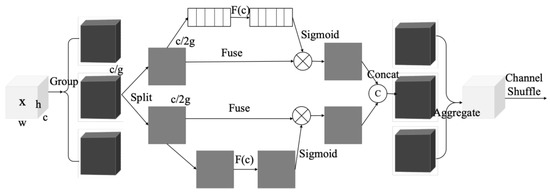 - Zhang, Q.L.; Yang, Y.B. Sa-net: Shuffle attention for deep convolutional neural networks. In Proceedings of the ICASSP 2021-2021 IEEE International Conference on Acoustics, Speech and Signal Processing (ICASSP), Toronto, ON, Canada, 6–11 June 2021; pp. 2235–2239. [Google Scholar]