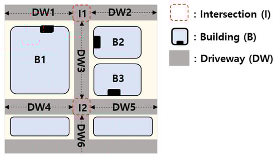 Second, the coarse planning step generates the coarse-level task sequence by planning coarse goal lists using the POPF planner. For planning, the task planner queries the environment information from the semantic database to configure the on-demand DB. Importantly, because this step utilizes the coarse-level tasks, the planner only queries the stem places among the Place environment elements to construct the on-demand DB. Finally, the coarse planning step generates coarse task sequences based on the stem places, such as the driveway, intersection, and building, as shown in Figure 5b.
