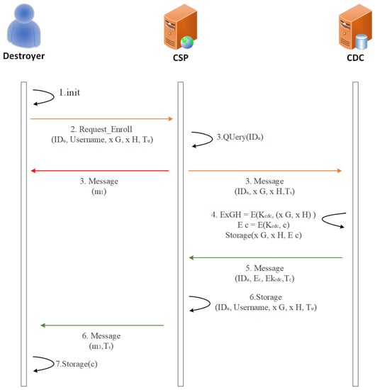 User → CSP: Request_Enroll(IDu, Username, xG, xH, Tu)