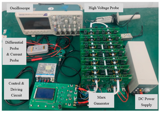- Chen, L.; Zhu, C.; Zheng, J.; Qiu, J.; Zhao, H.; Liu, K. A Flexible Solid-State Marx Modulator Module Based on Discrete Magnetic Coupling Drivers. Electronics 2023, 12, 3831. [Google Scholar] [CrossRef]
