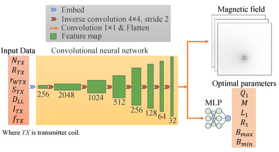 As shown in Figure 2, our proposed machine learning framework utilizes a U-Net-based [36] structure to learn the magnetic field distribution and a multi-layer perceptron (MLP) [37] branch to predict the optimal parameters.