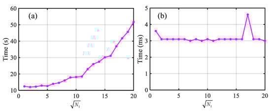 The relationship between calculation time and the number of turns. (a) Computed via COMSOL. (b) Computed via POWPTML.
