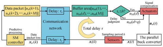 In order to further expand the application of the designed SMC system in digital circuits and facilitate the analysis of the transmission delay process of the NCS, the SMC of the parallel buck converter designed in (4), (6), and (10) will be discretized. Here the ZOH is used to discretize the system, and system states in (4) can be transformed into: