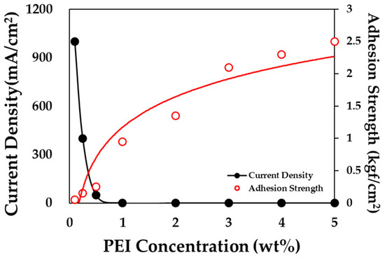 Electrical and adhesive characteristics of the interfacial layer according to the PEI content.