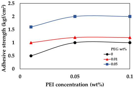 The adhesion characteristics of the PEI layer with the addition of PEG.