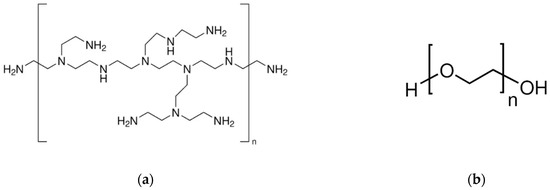 Chemical structures of two different types of surface modifiers: (a) PEI; (b) PEG.