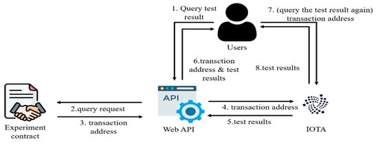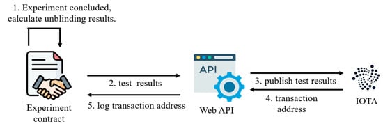 After the unblinding is completed, all users can obtain the experimental results through the experimental contract. To reduce the cost of accessing the experimental results, the system records the unblinding results in the IOTA transaction and records the IOTA transaction address in the experimental contract. The length of IOTA’s transaction address is 64 bytes, which is much smaller than that of the questionnaire results. Furthermore, IOTA does not require handling fees, which can effectively reduce the cost of repeatedly checking records. Anyone can check the unblinding results if there is an IOTA transaction address. This makes it possible to avoid the unblinding results being known to only a few people, resulting in opaque information and improper transfer of benefits, as depicted in Figure 9.