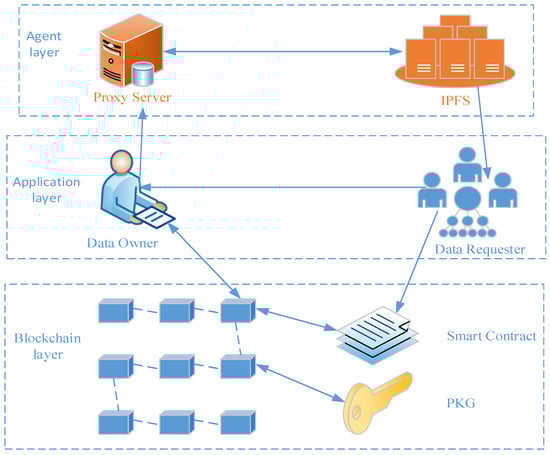 Blockchain: Blockchain includes two functions in this model. First, the encryption key and other important data are stored to achieve system security; second, log records are maintained during sharing for auditing and sourcing.