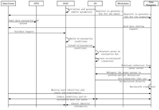 This scheme is based on the smart grid data center sharing model introduced in Section 3.1 and describes the sharing process when one data center user (data owner) and another data center user (data requester) have data-sharing needs. As shown in Figure 2.