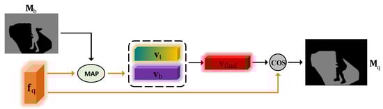 SBP receives the background prediction mask to be enhanced from ASD and uses the MAP operation and the query image to generate the self-support background prototype. In order to achieve fine-grained correction of background pixels, the teacher prototype and the self-support background prototype are fused to generate the final prototype, and then the cosine distance between the final prototype and the query feature map is calculated to generate the final prediction mask.