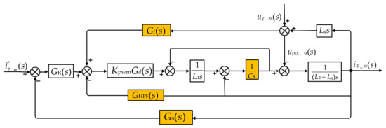 The active capacitor current damping method is commonly used to suppress the LCL resonance peak. However, to avoid the additional use of current sensors, a grid current active damping method is proposed. Figure 5 illustrates the system block diagram of the active grid current damping method, where the proportional feedback factor is represented by KAD.