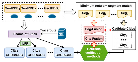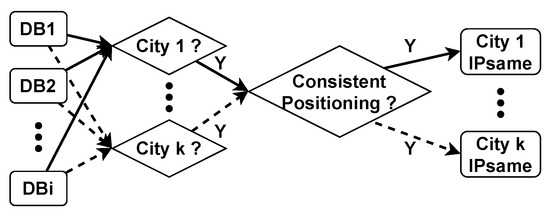 - Li, H.; Zhang, P.; Wang, Z.; Du, F.; Kuang, Y.; An, Y. Changing IP geolocation from arbitrary database query towards multi-databases fusion. In Proceedings of the 2017 IEEE Symposium on Computers and Communications (ISCC), Heraklion, Greece, 3–6 July 2017; pp. 1150–1157. [Google Scholar]