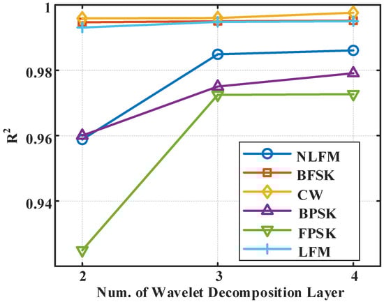 To evaluate the impact of the number of wavelet decomposition levels on the predictive performance of our proposed model, we set the decomposition levels to 2, 3, and 4, respectively, while keeping other parameters constant. As shown in the Figure 4, when the number of decomposition levels is set to 3, the average coefficient of determination R2 value increases, and the accuracy of the model’s predictions is above 97%. However, when the decomposition level is set to 4, the prediction accuracy of the model shows a slight increase. Therefore, considering the complexity of the model and the prediction accuracy, we consider setting the wavelet decomposition level to 3 to achieve a balance between performance and complexity.