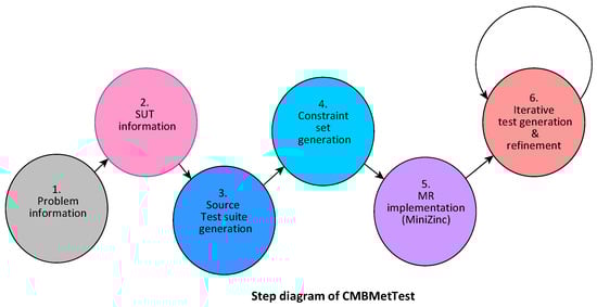 As mentioned, this paper presents CMBMeTest, a method to generate test suites through MBT+CP and MT for software under test, focusing on the design and implementation of MRs. CMBMeTest aims to provide an end-to-end process: in the first steps, it combines model-based testing and constraint programming to derive an initial set of test cases. Constraint programming is also used in later steps to guide the design, implementation and execution of MRs.