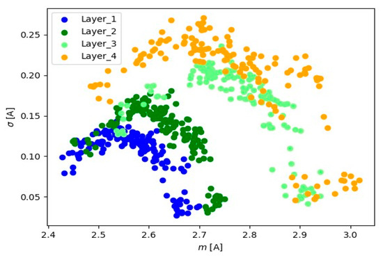 Visual analysis using the ‘mean-standard deviation’ system provides crucial information about signal positioning for various layers. The observed distinct differences in signal position suggest the presence of well-defined groups of signal readings for each material layer. In the ‘mean-standard deviation’ system, the mean refers to the central value, and the standard deviation determines the quantity of dispersion around the mean. The observed differences in signal position across different signal layers indicate variations in signal characteristics during various stages of material processing. These signal groupings suggest the existence of distinct features and parameters for each layer, which could be linked to fluctuations in cutting tool conditions.