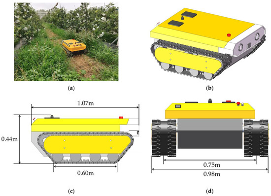 - Jiao, J.; Chen, J.; Qiao, Y.; Wang, W.; Wang, M.; Gu, L.; Li, Z. Adaptive sliding mode control of trajectory tracking based on DC motor drive for agricultural tracked robot. Trans. Chin. Soc. Agric. Eng. 2018, 34, 64–70. [Google Scholar]