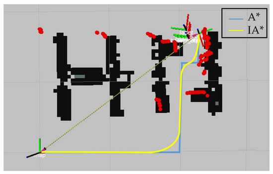 In order to visually compare the A* algorithm with the IA* algorithm, we recorded their planned path length, runtime, and number of turning points. The results are shown in Table 1.