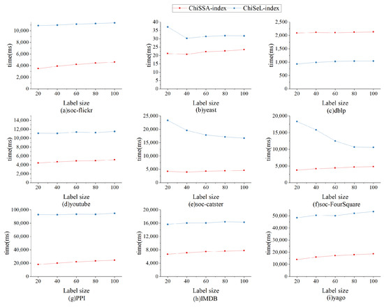 Figure 11 shows the effect of the number of labels on the index construction time. As shown from Figure 11, the ChiSSA-index exhibits higher efficiency relative to the ChiSeL-index. We observe that the ChiSSA-index is able to complete the index construction process faster under the same dataset and hardware environment.