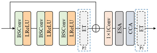 Regarding the shallow feature extraction module: first, given the input low-resolution image , we use BSConv to obtain the shallow features . The structure of BSConv is shown in Figure 3. The process can be expressed as follows: