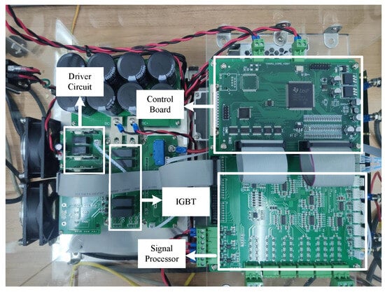 A small-scale prototype of the single-phase rectifier is built in a laboratory, which is used to investigate the effectiveness of the sensor fault diagnosis method. Figure 3 shows the prototype platform; it basically comprises the control board, the main circuit, the signal processors, and the driver circuit. The system control is implemented using DSP(TMS320F28335). The load is a 3-phase inverter and an induction machine. The grid current and the DC link voltage are measured by sensors in the platform. The electrical parameters are given in Table 2. The experimental results are displayed afterwards.