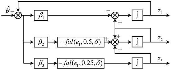 In order to reduce the error in the position estimation system, it is necessary to observe the position estimation value of the SRM rotor. As shown in Figure 10, the ESO system is designed to obtain the position, velocity, and total disturbance by observing the predicted rotational speed obtained by SOGI-FLL. Observations are fed into the system, compensated, and adjusted in a timely manner to increase system robustness and further improve dynamic performance.