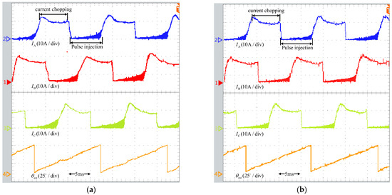 The relationship between inductance and the angular position of the rotor remains virtually constant for currents below 10 A. If the current exceeds 10 A, the inductance will significantly decrease due to the magnetic circuit saturation effect. Only unsaturated inductance values are calculated within the pulse injection region to minimize the negative effect of magnetic circuit saturation on rotor position estimation, as shown in Figure 6. The calculation of the unsaturated inductance can be performed using Equation (3) once the idle phase freewheeling is completed.