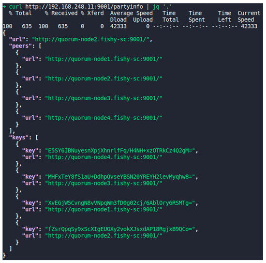 Figure 6 shows the results of the exploitation of the Tessera endpoints. The user gains knowledge of the public keys of the nodes, which (s)he can use to sign their transaction and send to the blockchain.