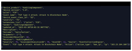 The aim in this section is to demonstrate that the FISHY platform detects the attacks of type 4, titled “Attack to blockchain node”. This is an attack more likely to occur from a knowledgeable person to insert fake information in the blockchain used by the F2F platform. Let us assume the attacker tries to compromise the blockchain node, trying to connect to the blockchain node from a device with an IP address that is not whitelisted for the F2F premises.