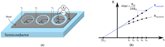 The transfer length is considered the minimal distance required for the current to go through a metal–semiconductor interface. A typical evolution of the resistance is presented in Figure 1b. Finally, the SCR can be calculated by Equation (3).