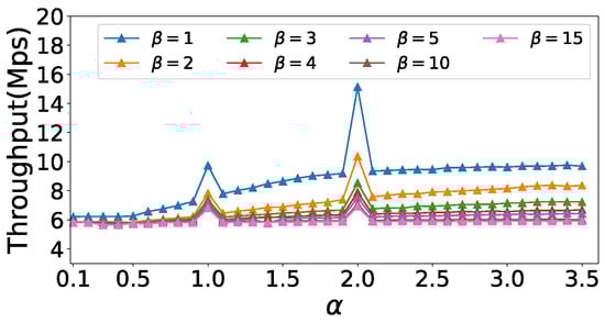 Then we focus on . It is assumed that all packets are uniformly distributed. From Equation (8), we can obtain when ; thus, we have: