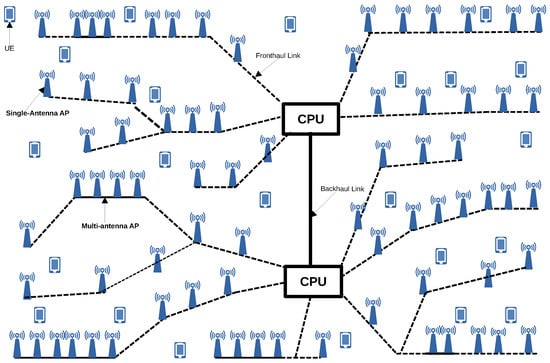 - Mukherjee, S.; Lee, J. Edge Computing-Enabled Cell-Free Massive MIMO Systems. IEEE Trans. Wirel. Commun. 2020, 19, 2884–2899. [Google Scholar] [CrossRef]