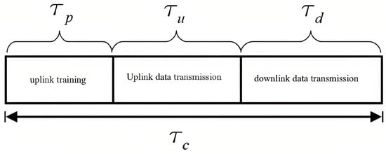 Because acquiring channel state information (CSI) in the downlink is challenging, mMIMO primarily relies on uplink channel estimation, channel reciprocity, and TDD. As such, Marzeta et al. [19] define an authorized mMIMO network as a multicarrier cellular network having L cells operating synchronously using TDD protocol. The jth BS has antennas to provide channel hardening and communicates with single-antenna UEs concurrently on every time-frequency sample, having an antenna-UE ratio of . Every BS works independently and utilizes linear receive combining and linear transmit precoding to handle signals.