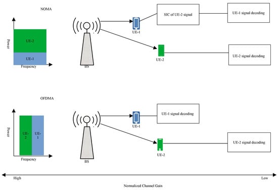 NOMA is an emerging technology that offers promise for the forthcoming generation of wireless communications. The capacity of orthogonal multiple-access approaches to service users is often constrained by the availability of orthogonal resources. NOMA enables more users to be served than the available resources would usually allow but with greater complexity of the receivers as a trade-off. The benefits of NOMA include massive connectivity, low latency, improved spectral performance, and relaxed channel feedback [4,5,6,7].