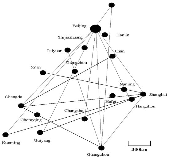 Since the flight boundary is determined by the take-off and landing cities and route distribution, when the center of a hexagon is outside the boundary of the aircraft area (O2 in Figure 3), it means that there must be take-off and landing cities in the area S and the communication range of the airport can cover S. Therefore, ignoring the aircraft in this area, communication will not be affected by clustering. □