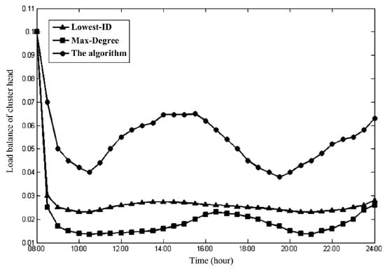 According to Equation (14), the load balancing of cluster heads was simulated and calculated from the perspective of the whole network and the experimental results are shown in Figure 18.