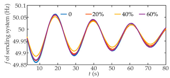 The hydro-wind sending power system model based on a practical project is established, as shown in Figure 15. Detailed parameters are shown in Table 4. The asynchronous interconnection operation situation is simulated, which is more rational to the occurrence scenario of ULFOs. The influence and control effectiveness are simulated in this section.