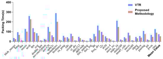 The comparison of packing time between VTR and the proposed methodology.