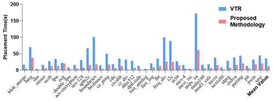 The comparison of placement time between VTR and the proposed methodology.