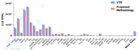 The comparison of CLB HPWL between VTR and the proposed methodology.