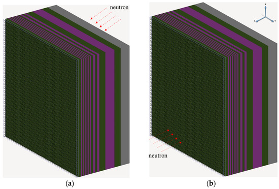 Neutron impinging from top and bottom schematic diagrams, (a) from top and (b) from bottom.